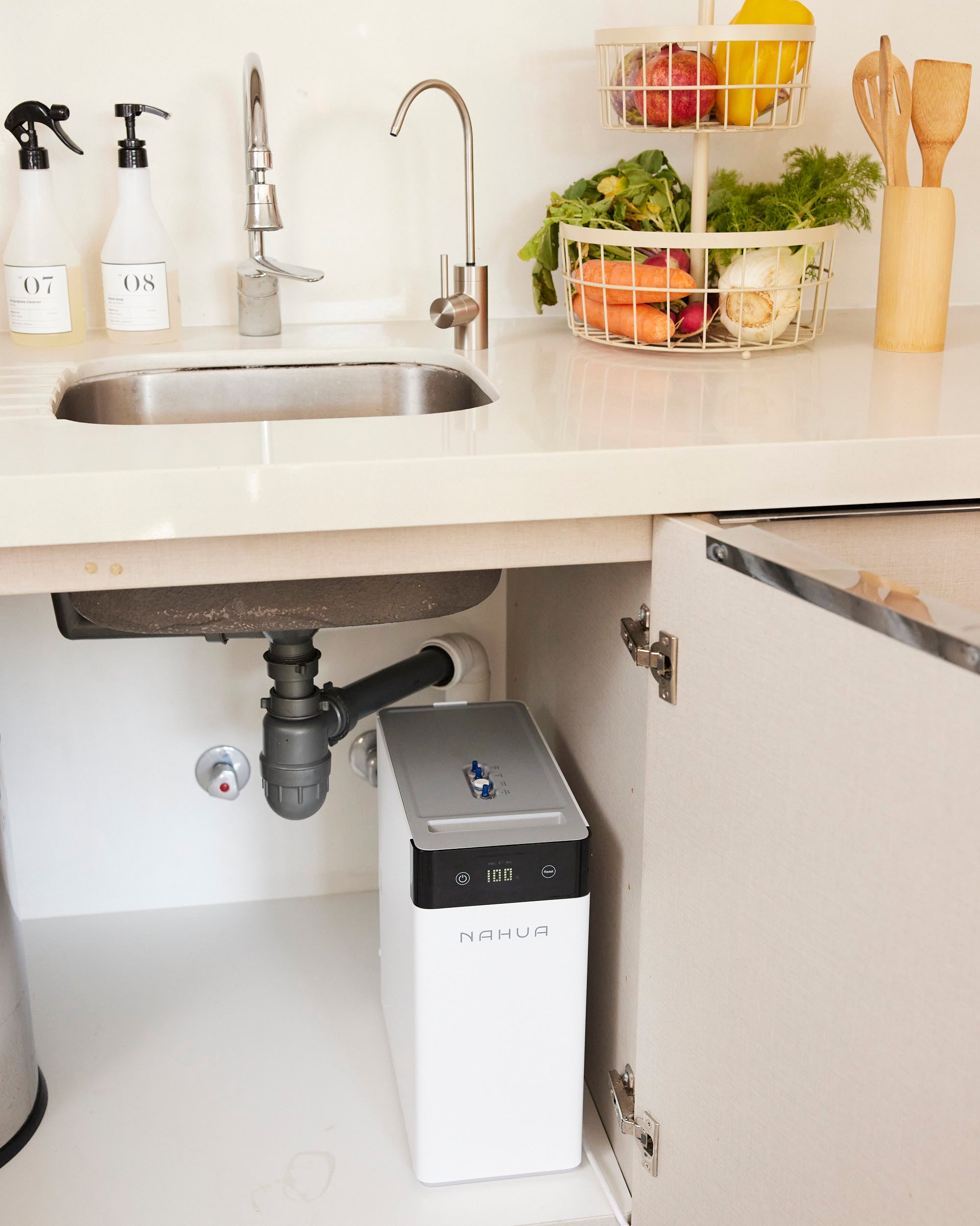 El purificador bajo cubierta se destaca por su avanzado sistema de purificación y diseño único y minimalista. Su tamaño es ideal para instalar en cualquier lugar y sin estanque de agua por lo que ocupara muy poco espacio a comparación de otros equipos disponibles en el mercado. Este equipo integra medidas precisas para satisfacer tus necesidades diarias de agua, siendo capaz de purificar mas de 2.000 litros al día.